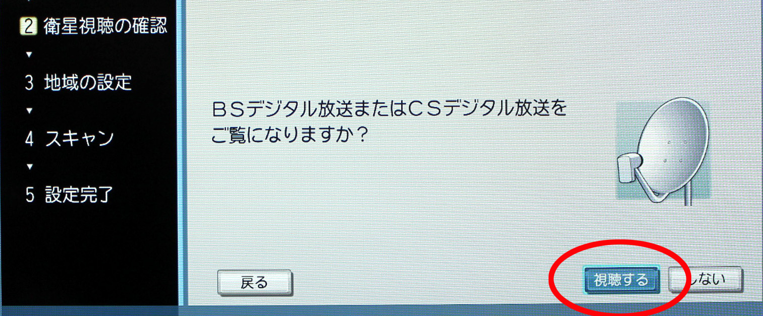 @リモコンのメニュー(クイック)ボタンで設定→はじめての設定へ![]() A地上デジタルチャンネル設定でお住まいの地域を設定します(当社の商品は主に千葉に設定されています) ![]() B地上デジタル放送の初期スキャンを行います ![]() C郵便番号を設定します。 ![]() Dアンテナ設定で、アンテナに電源を供給するかどうかを設定します(当社の商品は主に「供給する」に設定されています) ![]() |