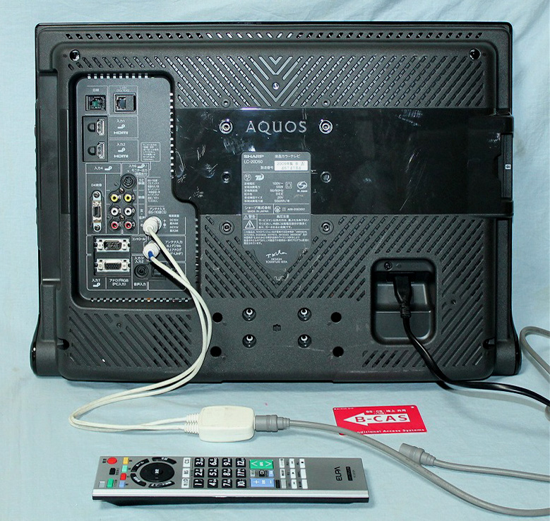 @分波器を用いて、混合された電波をBS/CSと地上デジタルで分波します。 ![]() A各々のケーブルをテレビの入力端子にセットします。また、B-CASカード(方向に注意)、電源コードをセットします。 ![]() B電源を入れ、メニュー画面を表示。 C【地デジ】お住まいの地域と郵便番号をリモコンで入力し、地上デジタル電波をスキャン D【BS/CS】アンテナ電源供給を設定(お住まいの環境により異なります) |